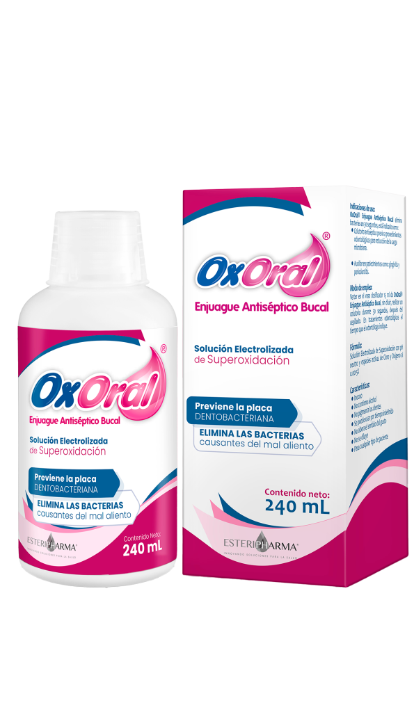 Gracias a su acción antiséptica, OxOral® se convierte en un aliado eficaz para prevenir infecciones y proteger tu salud bucal antes, durante y después de cada tratamiento dental.